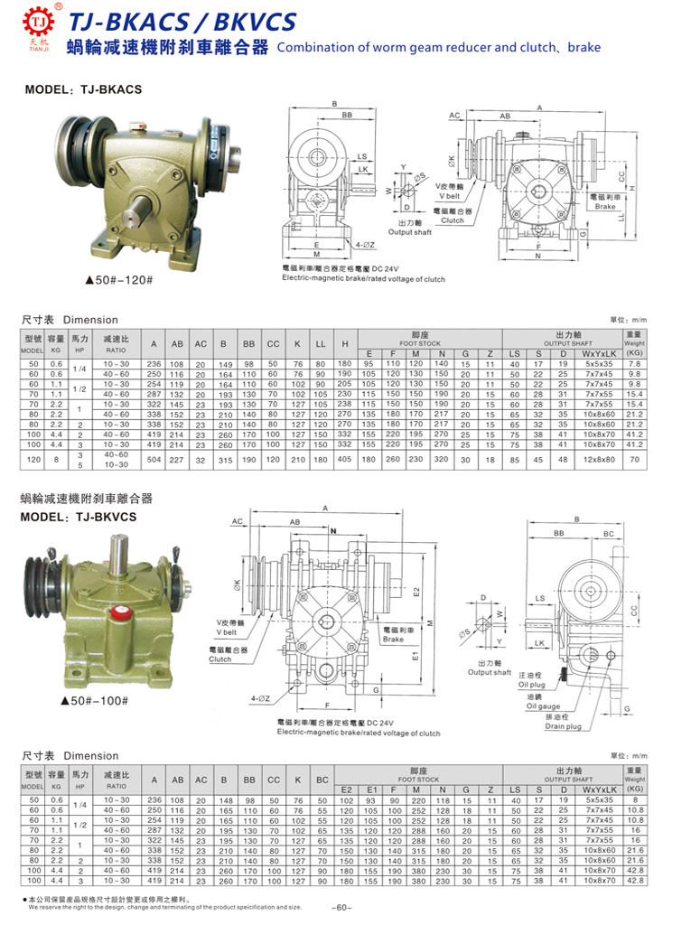 該型離合剎車減速機(jī)組合安裝、維護(hù)、使用都極為方便,不需要很復(fù)雜的連接,安裝方式分為立式型及臥式型。立式安裝型的除了該型(BKDCS型)外,還有一款BKACS型,詳細(xì)介紹請(qǐng)參考電磁剎車離合減速機(jī)BKACS型。
