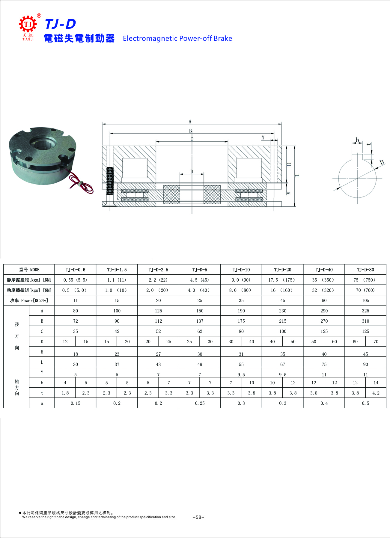 天機(jī)傳動(dòng)斷電剎車器安裝尺寸及規(guī)格型號(hào)參數(shù)如下: